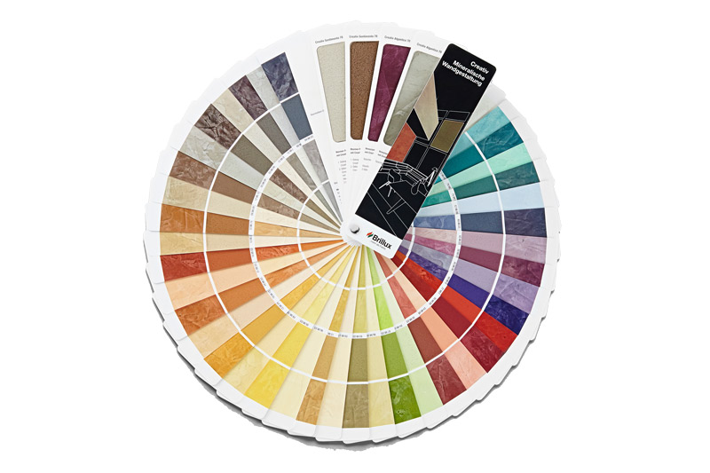 The "Creativ Mineral Wall Design" Color Chart with 78 color shades, all available via the color system, helps you when consulting with customers. The individual color samples Creativ Algantico 70 and Creativ Sentimento 78 are reproduced using special printing techniques. Talk to your sales consultant when you would like to purchase our color charts.