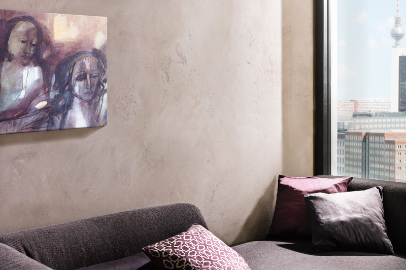 For the mineral wall design application techniques, creative appearance is combined with a healthy indoor climate. You choose between using our Decorating Spatula Algantico 70 and Sentimento 78 and between the iridescent shine in "Stucco veneziano" effect and a dull matt fine marble plaster. A mineral wall design also to helps to combat mold growth.