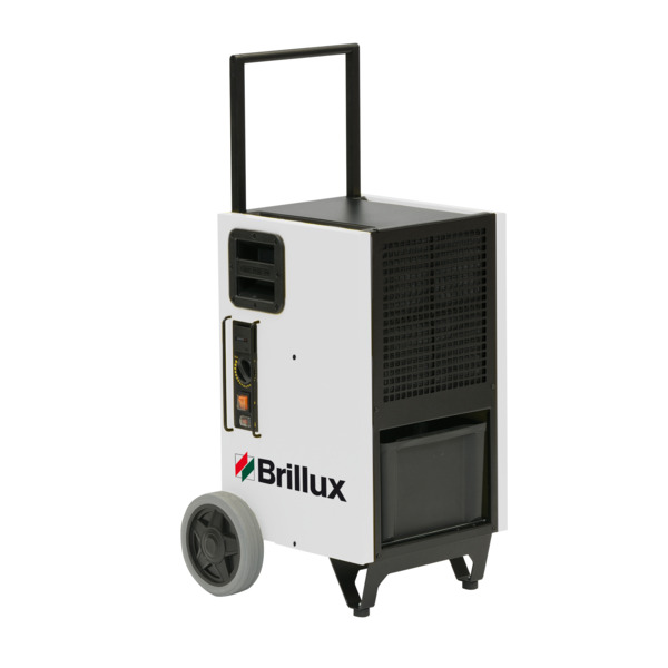 Powerful and durable air dehumidifier with high dehumidification output, also at low temperatures. Ideal to dry new buildings. Rolling piston compressor. With operating hours counter and integrated hygrostat that independently switches off the compressor upon reaching the desired humidity levels. The device can either be operated using a drain hose (commercially available 1/2" water hose) or the installed collection container. Dehumidifying is temporarily stopped upon reaching the maximum collection capacity and the tank check lamp lights up.